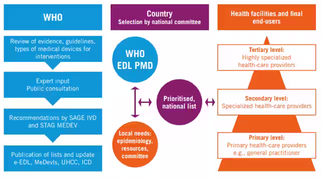 L'OMS utilizza i principi dell'HTA per aggiornare continuamente le liste prioritarie. L'obiettivo è migliorare l'accesso a dispositivi medici adatti. Serve per migliorare la qualità dell'assistenza, affrontare i bisogni sanitari e rafforzare i sistemi sanitari. Le liste forniscono una guida basata su prove ai responsabili delle politiche.